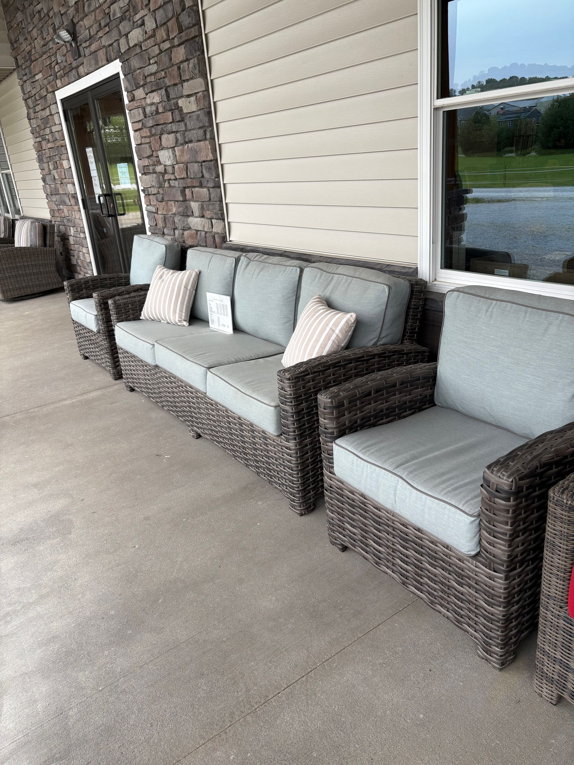 Both of our collections feature everything you need to entertain and relax in the great outdoors: sofas, chaise lounge, coffee tables, dining sets, gliders and rockers.